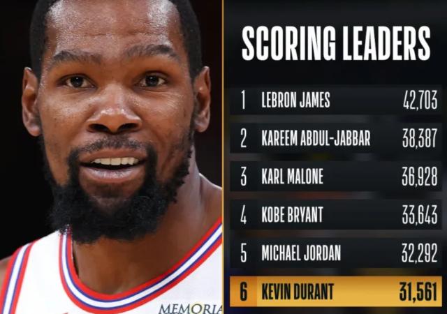五星体育直播-杜兰特总得分超诺维茨基升第6 本赛季有望超乔丹