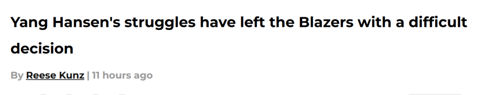 开拓者目前20胜22负,暂列西部第九,跻身季后赛的竞争行列。如果球队志在重返季后赛,那他们的容错率会极低,根本没有空间给杨瀚森这样的潜力新人长时间练级。