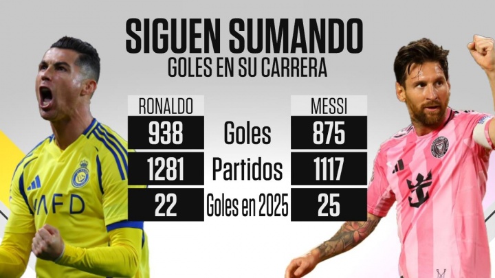 梅罗进球数据更新:梅西875球年度25球入账,C罗总进球938球