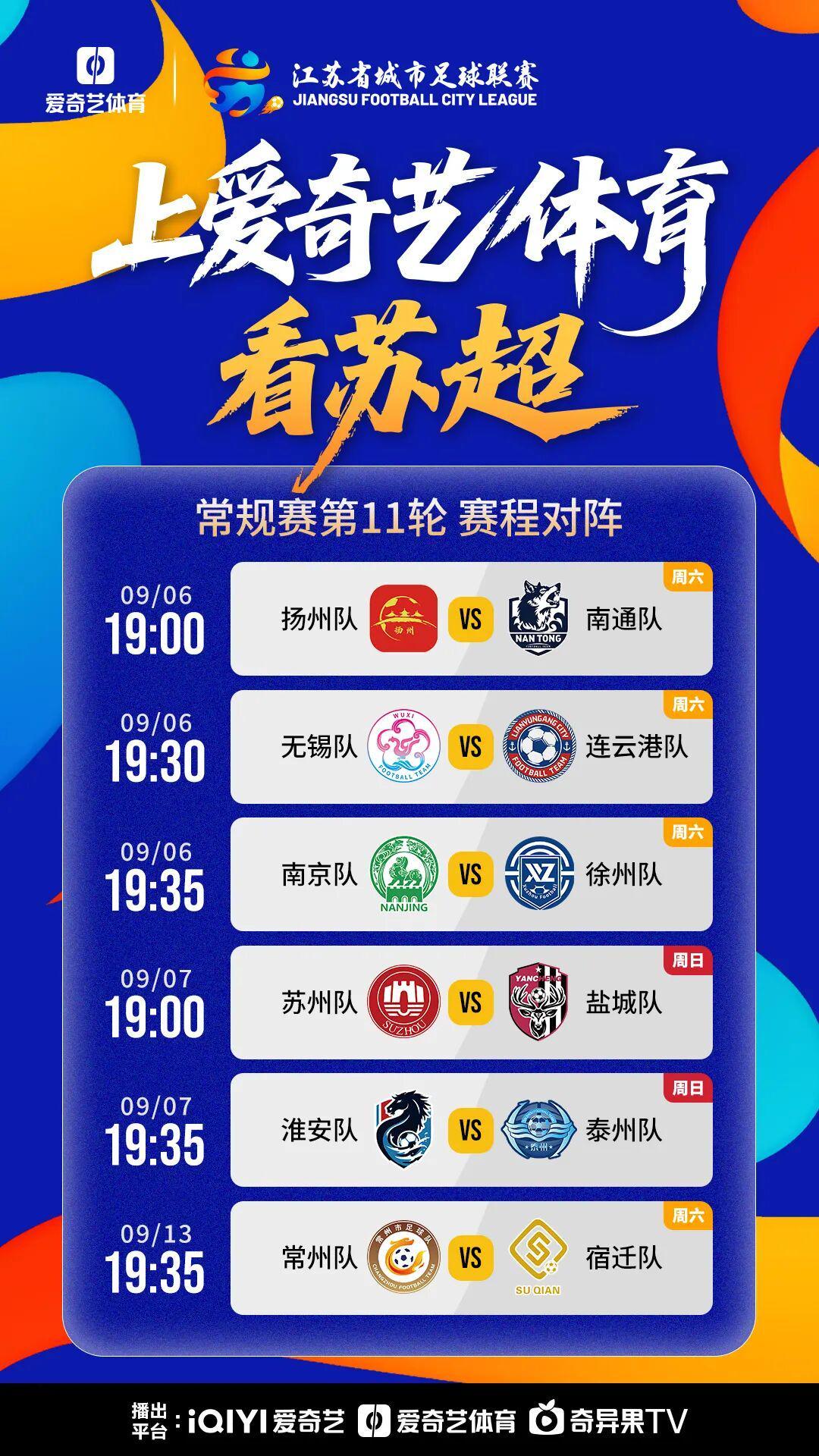 9月6日晚,“苏超”进入最后3轮的收官阶段,第11轮对决火热来袭,这轮比赛又将有哪些看点?上爱奇艺体育,看苏超。